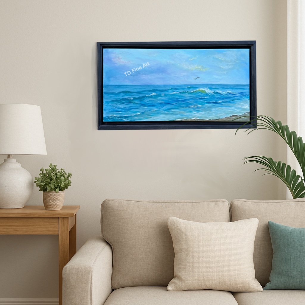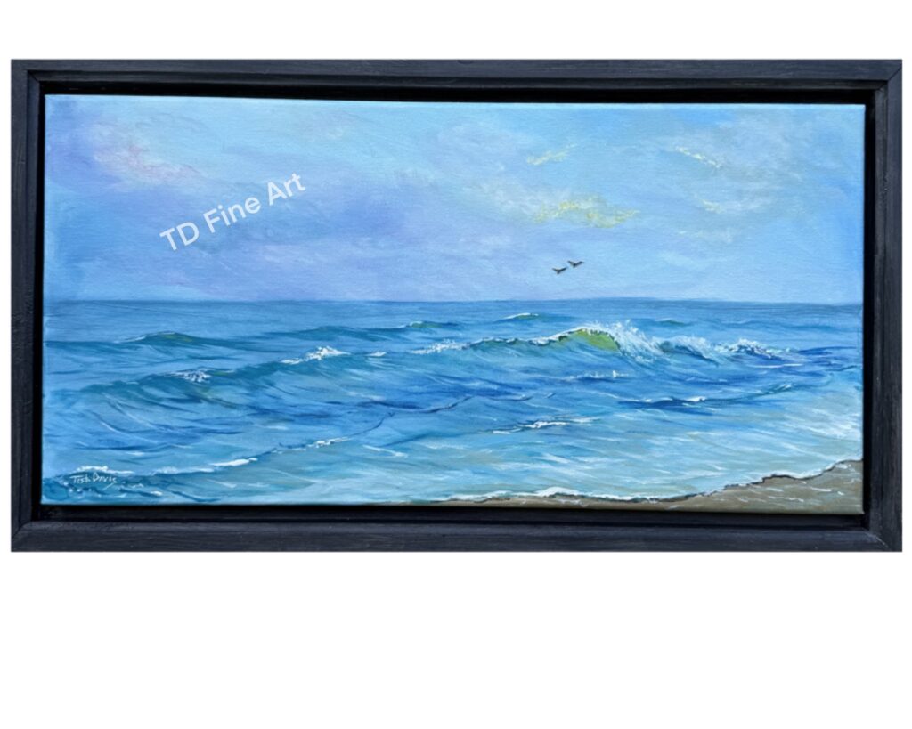 Seascape Another Happy Day Was Now $198 SaleA vibrant, joy-filled seascape alive with bold blue tones, celebrating the movement of the sea. This acrylic painting is bright, refreshing, and contemporary. It would look lovely in any space needing a splash of color, from the living room to bedroom. Framed by the artist, handcrafted in dark gray pine. The canvas appears to be “floating” inside the frame. The finished product measures 22″x12″. Watermark not included in product. Pricing includes free domestic shipping in the United States. Please use the contact form to inquire about International shipping. Quantity Enter an amount $ Add to Cart Add to Cart You may also like Previous Next Sale Florida Sunset Oil Painting $375 Compare to $670 Sale Water Hazard Golf Acrylic Painting $325 Compare to $595 Sale Rhythm & Waves Surf Guitar Acrylic Painting $450 Compare to $830