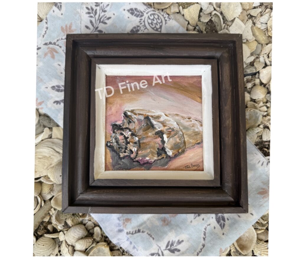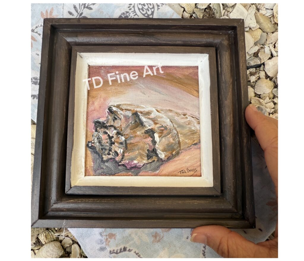 Seaside Memories Framed Seashell Was $42 Now $25 Sale“Seaside Memories” is a small impressionistic seashell painting with expressive, blended brushstrokes and a soft muted peach background. The loose, painterly style captures the warmth of the coast in a simple yet elegant way. Framed in a handcrafted dark brown wood frame, this 6.5″ x 6.5″ piece makes a charming coastal accent or thoughtful gift. Watermark is not added to the actual product. Pricing includes free domestic shipping in the United States. Please use the contact form to inquire about international shipping. Quantity Enter an amount $ Add to Cart Add to Cart You may also like Previous Next Sale Florida Sunset Oil Painting $375 Compare to $670 Sale Water Hazard Golf Acrylic Painting $325 Compare to $595 Sale Rhythm & Waves Surf Guitar Acrylic Painting $450 Compare to $830